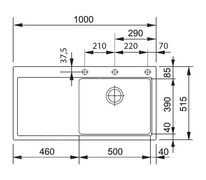 Fragranit Spülbecken MTG 611/2, Abtropffläche rechts