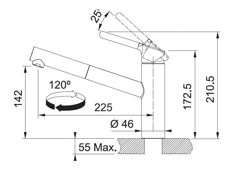 - Auslauf drehbar um 120°