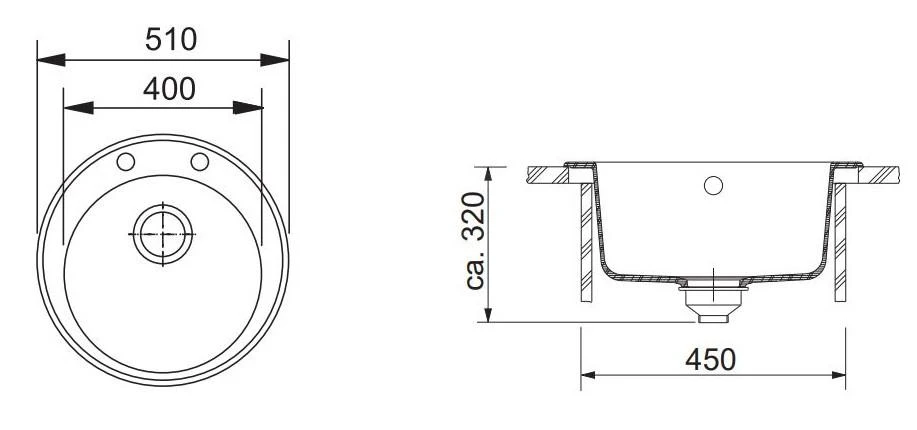 Durchmesser des Spülbeckens: 400 × 195 mm