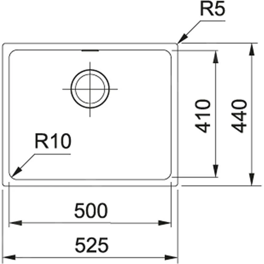 - Abmessungen der Spüle: 500 × 410 mm