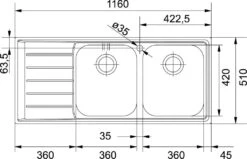 Franke Neptun – Spülbecken Edelstahl NEX 621/2, 1160×510 Mm 101.0199.895