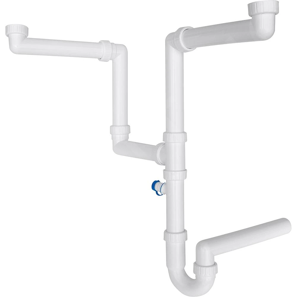 F3L – Ablaufverbinding für Raumsparen inklusive Siphon und Abzweigung für die Spülmaschine